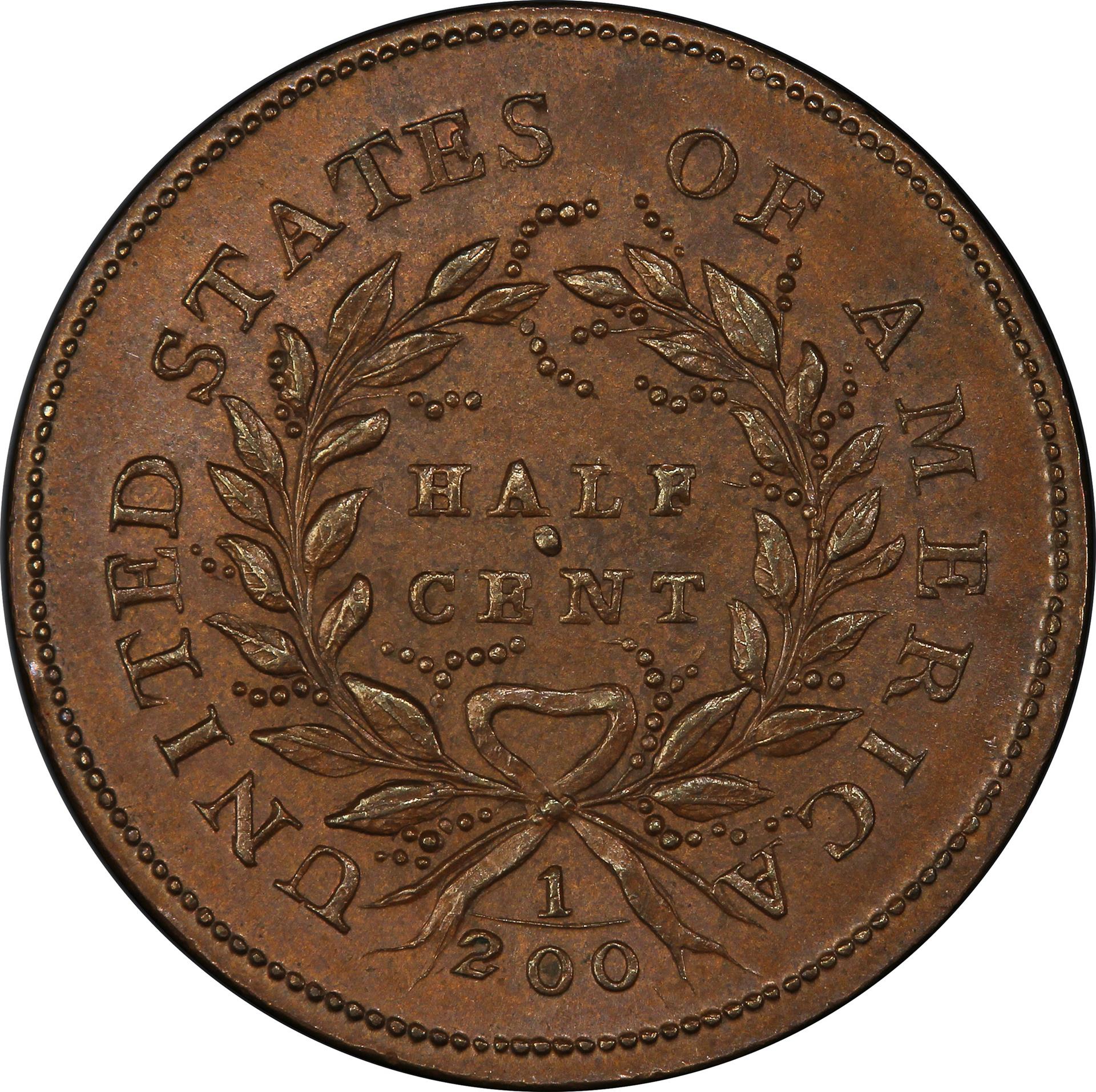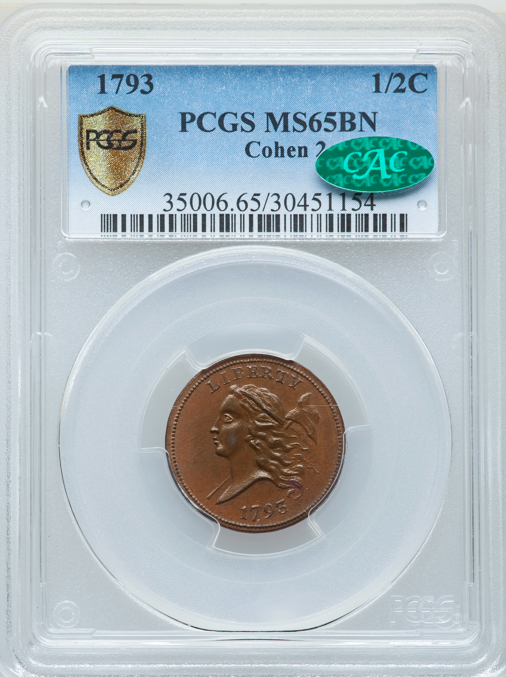 1793 LIBERTY CAP 1/2, TYPE 1 FACING LEFT MS65 Brown