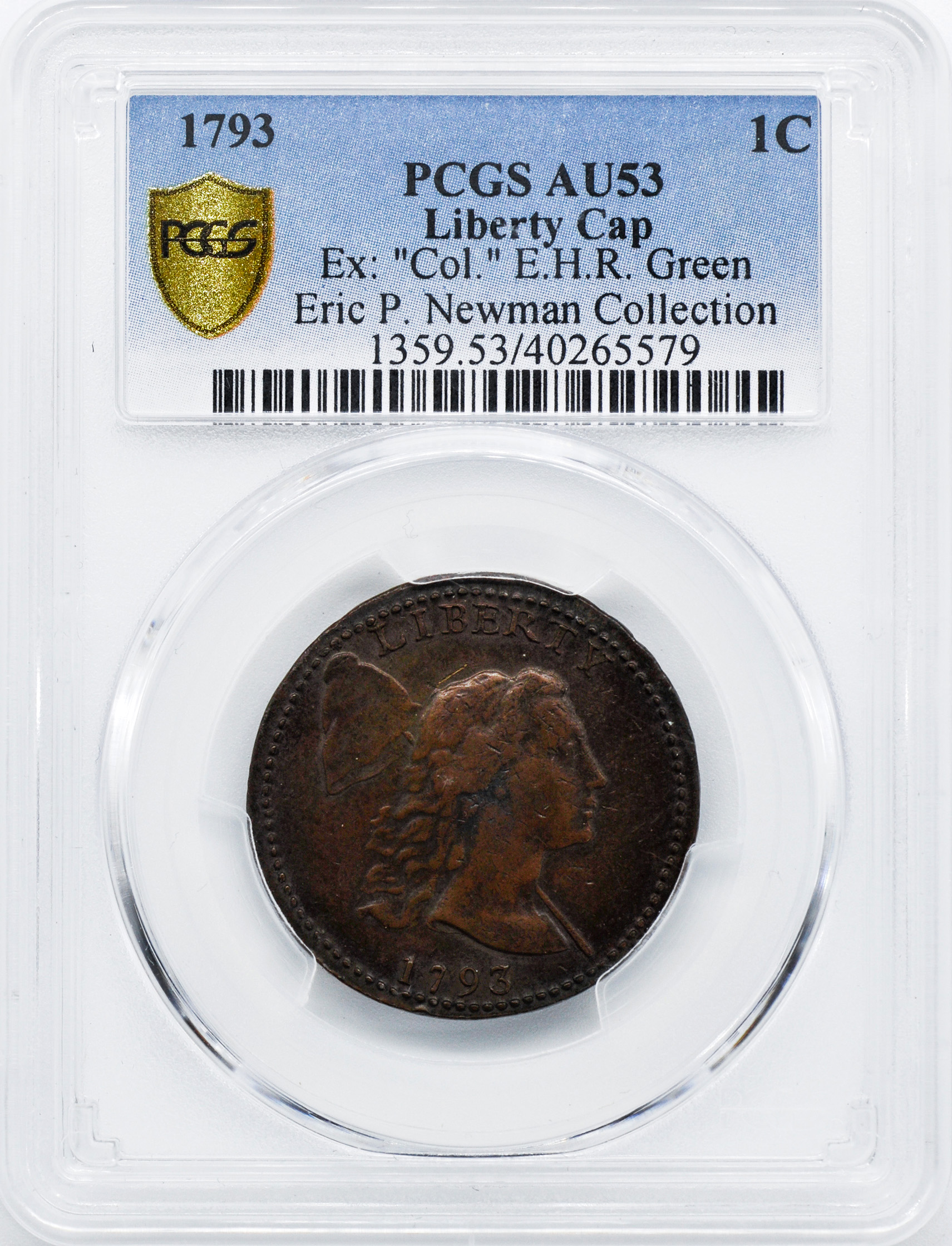 1793 LIBERTY CAP 1C, LIBERTY CAP AU53 Brown