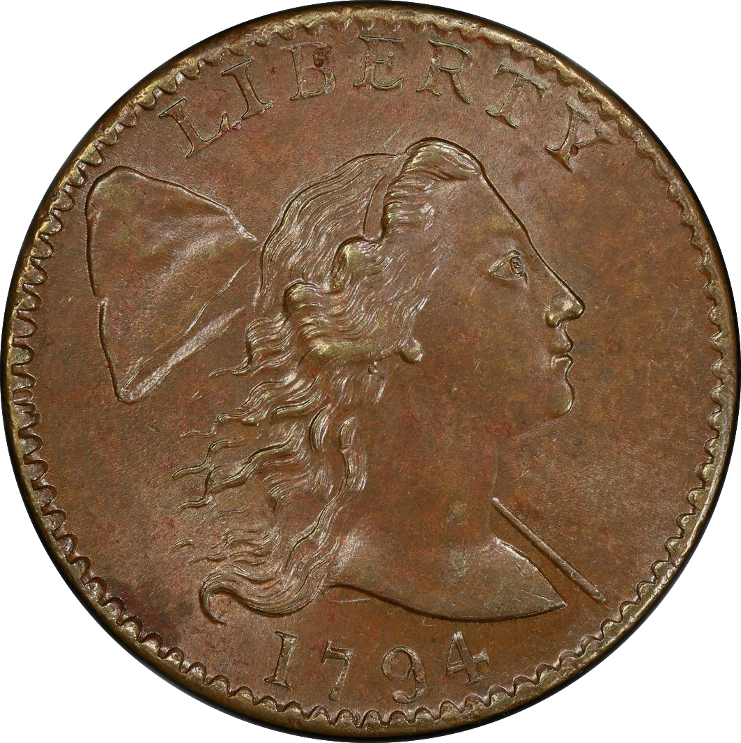 1794 FLOWING HAIR LARGE 1C, HEAD OF 1794, LIBERTY CAP, DEN MS66+ Brown