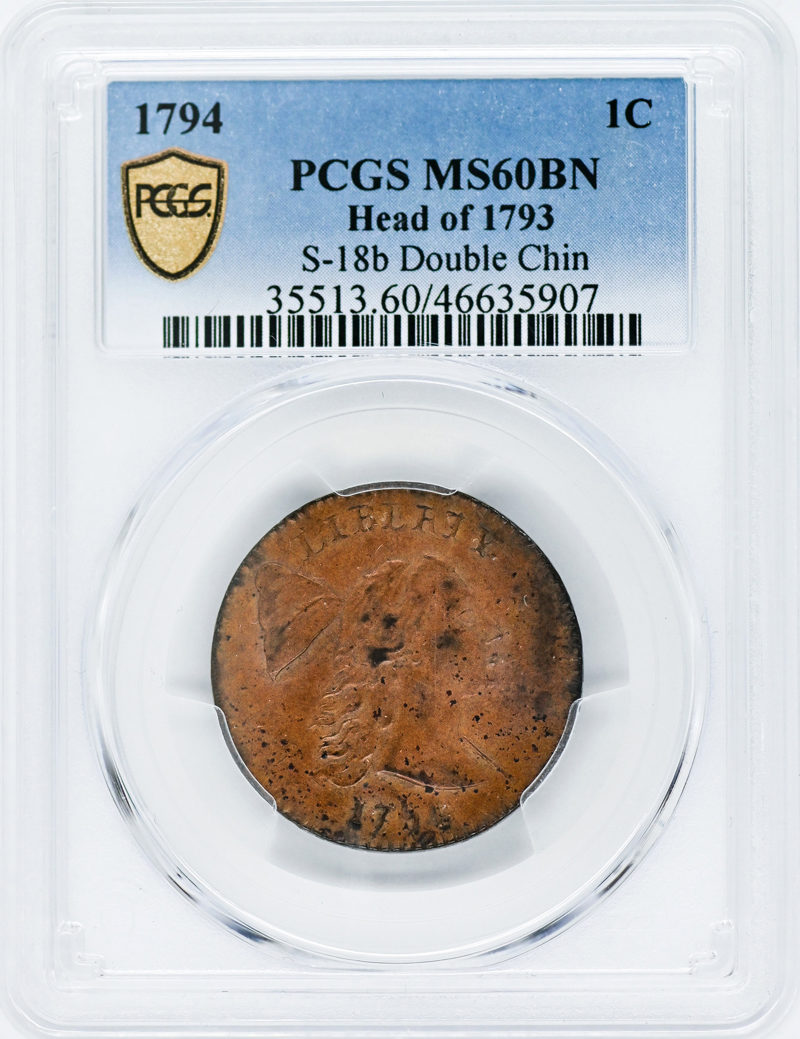 1794 LIBERTY CAP 1C, HEAD OF 1793, DENT. BORDER MS60 Brown1794 LIBERTY CAP 1C, HEAD OF 1793, DENT. BORDER MS60 Brown