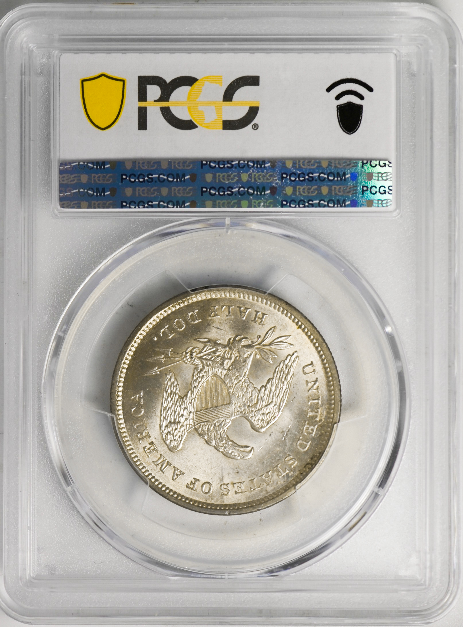NO DRAPERY. AN INCREDIBLE WHITE LUSTROUS GEM. WE CANNOT IMAGINE A FINER SPECIMEN OF THIS COIN. LOOKS LIKE IT WOULD HAVE DAY IT WAS STRUCK. TIED WITH ONE OTHER COIN FOR HIGHEST GRADED AT PCGS.