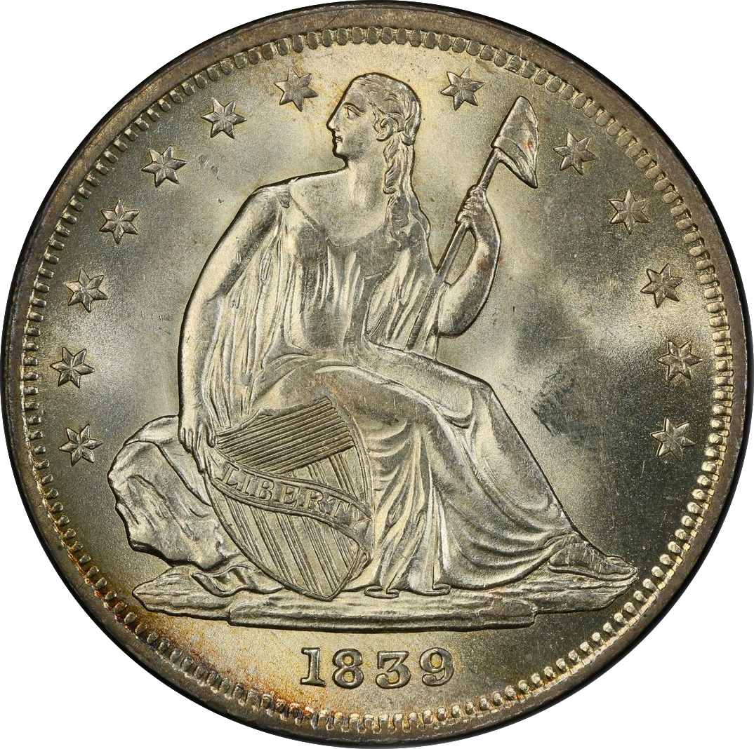 1839 LIBERTY SEATED 50C, NO DRAPERY MS65+