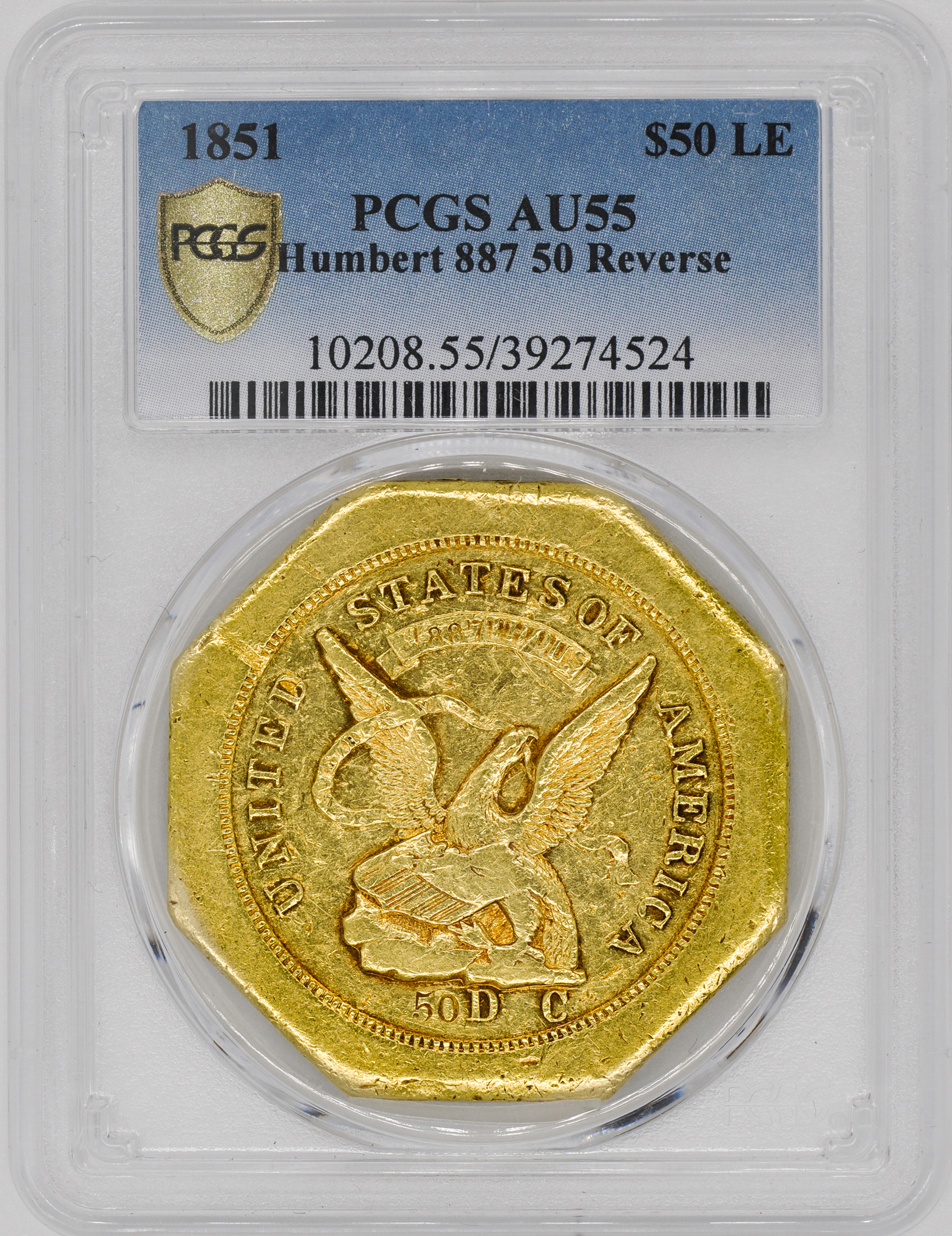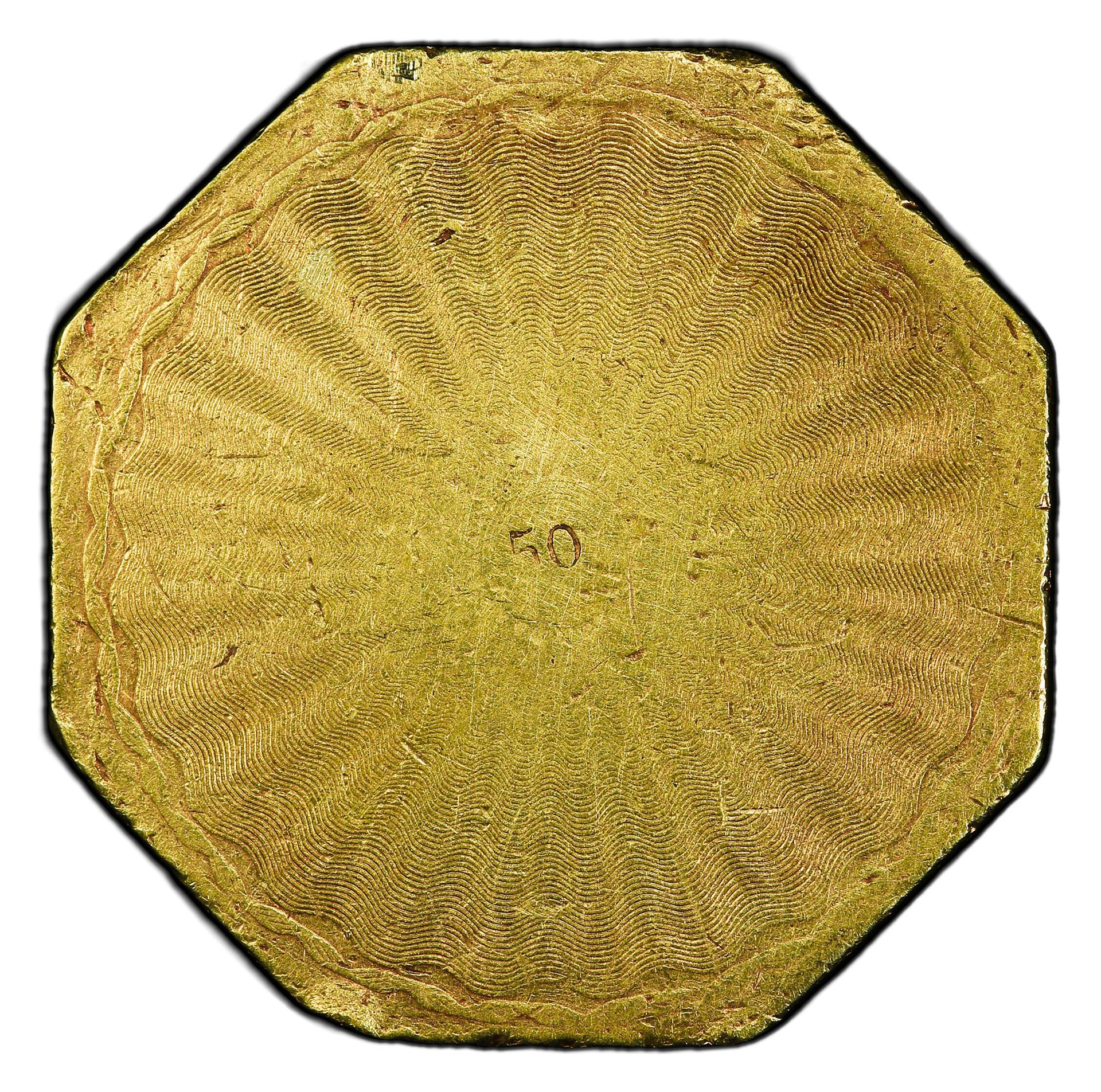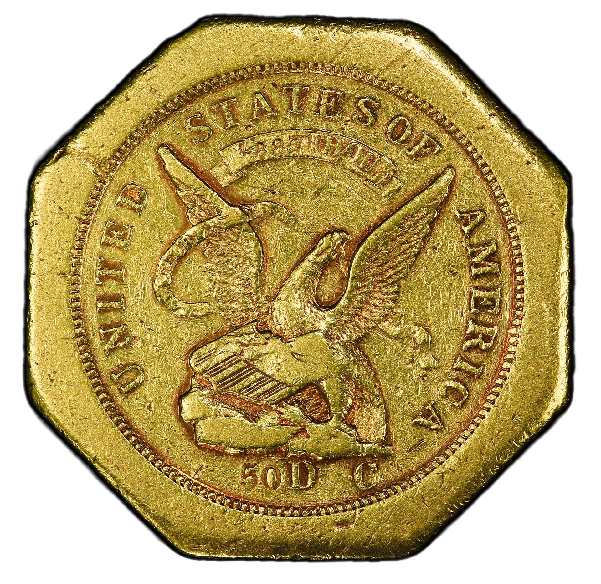 LETTERED EDGE. VERY CHOICE SURFACES SHOWING INSIGNIFICANT WEAR. VERY SCARCE HUMERT DESIGN FROM THE GOLD RUSH DAYS.