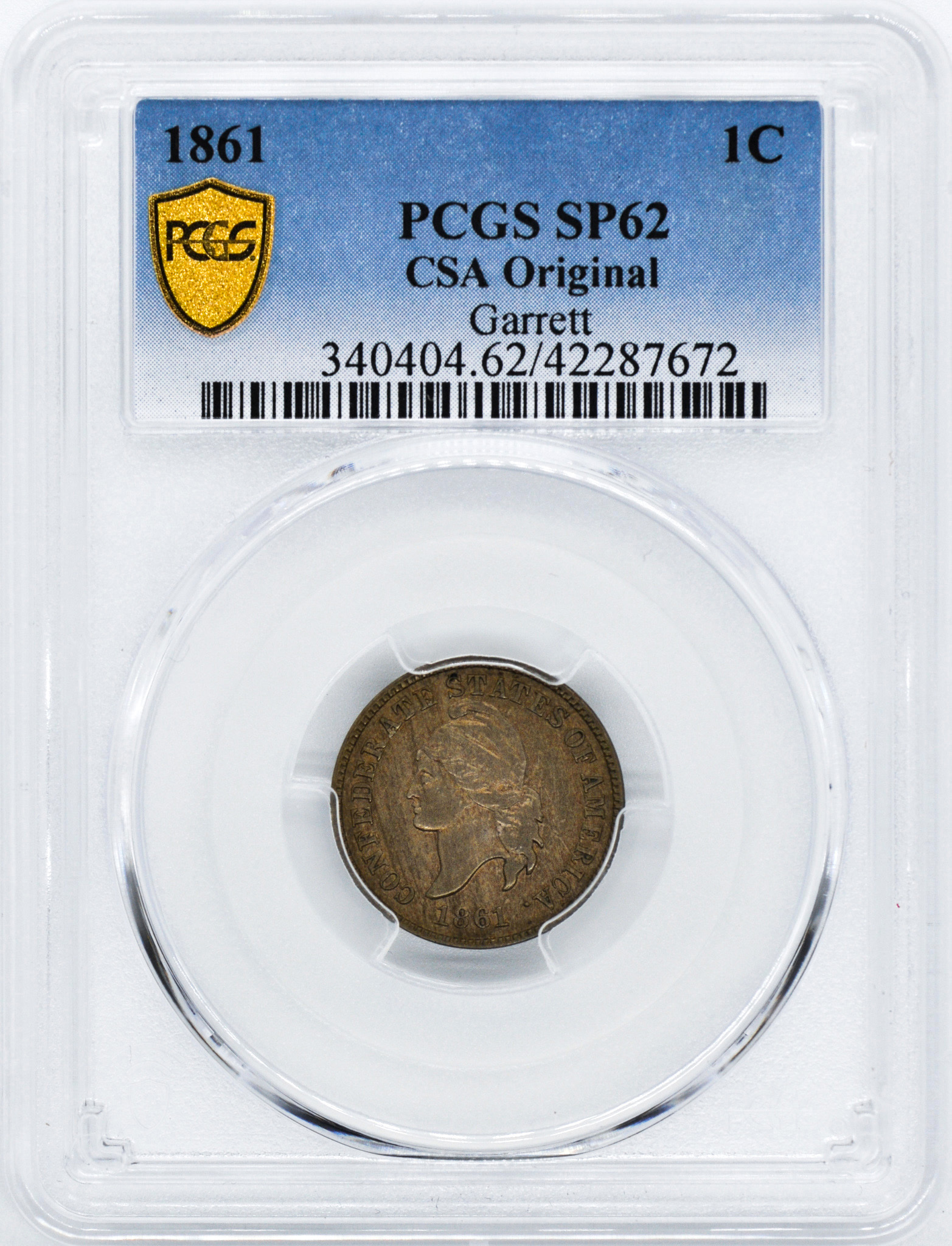1861 CONFEDERATE 1C, COPPER 1C MS62