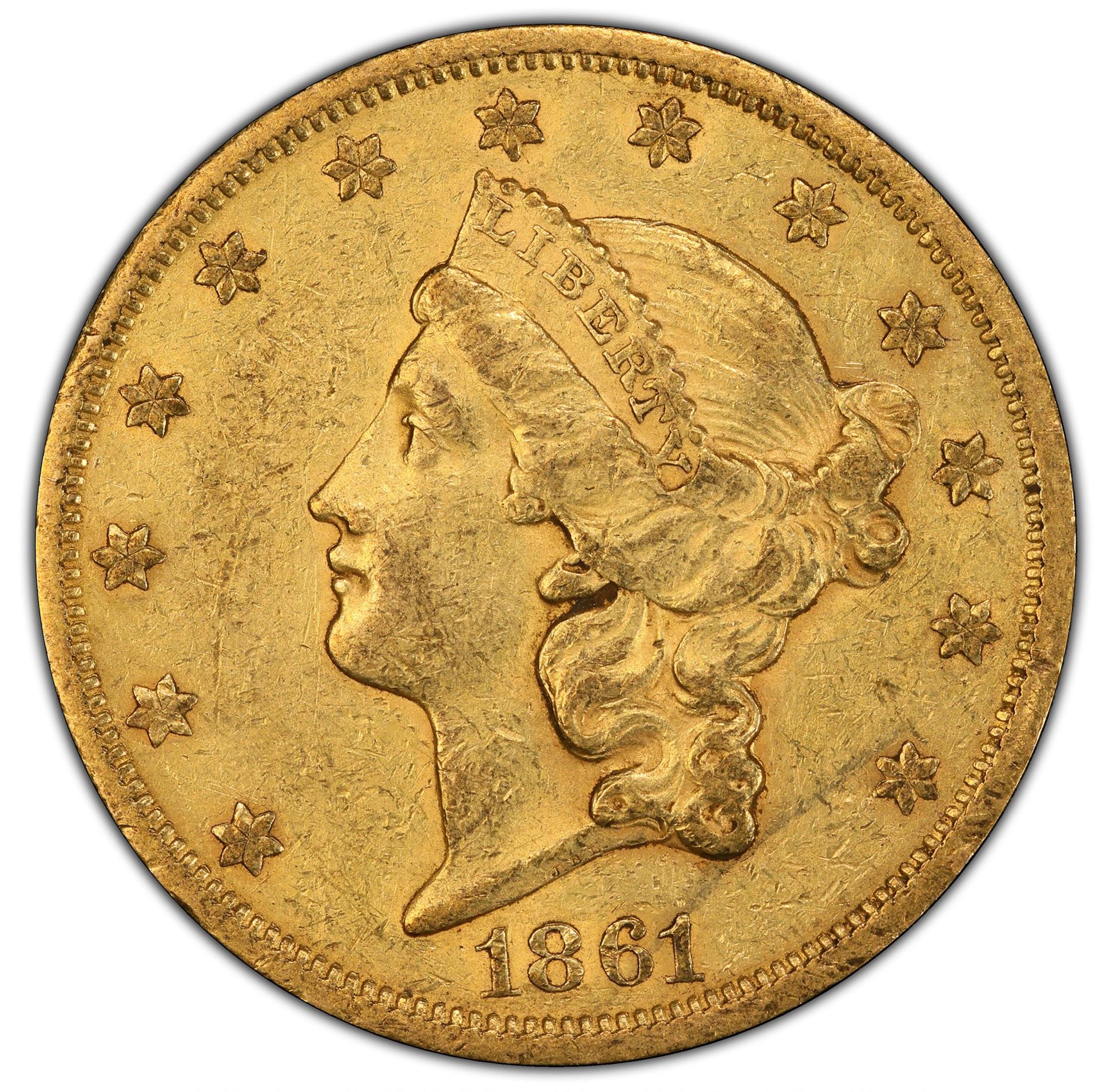 1861-S LIBERTY HEAD $20, PAQUET AU55