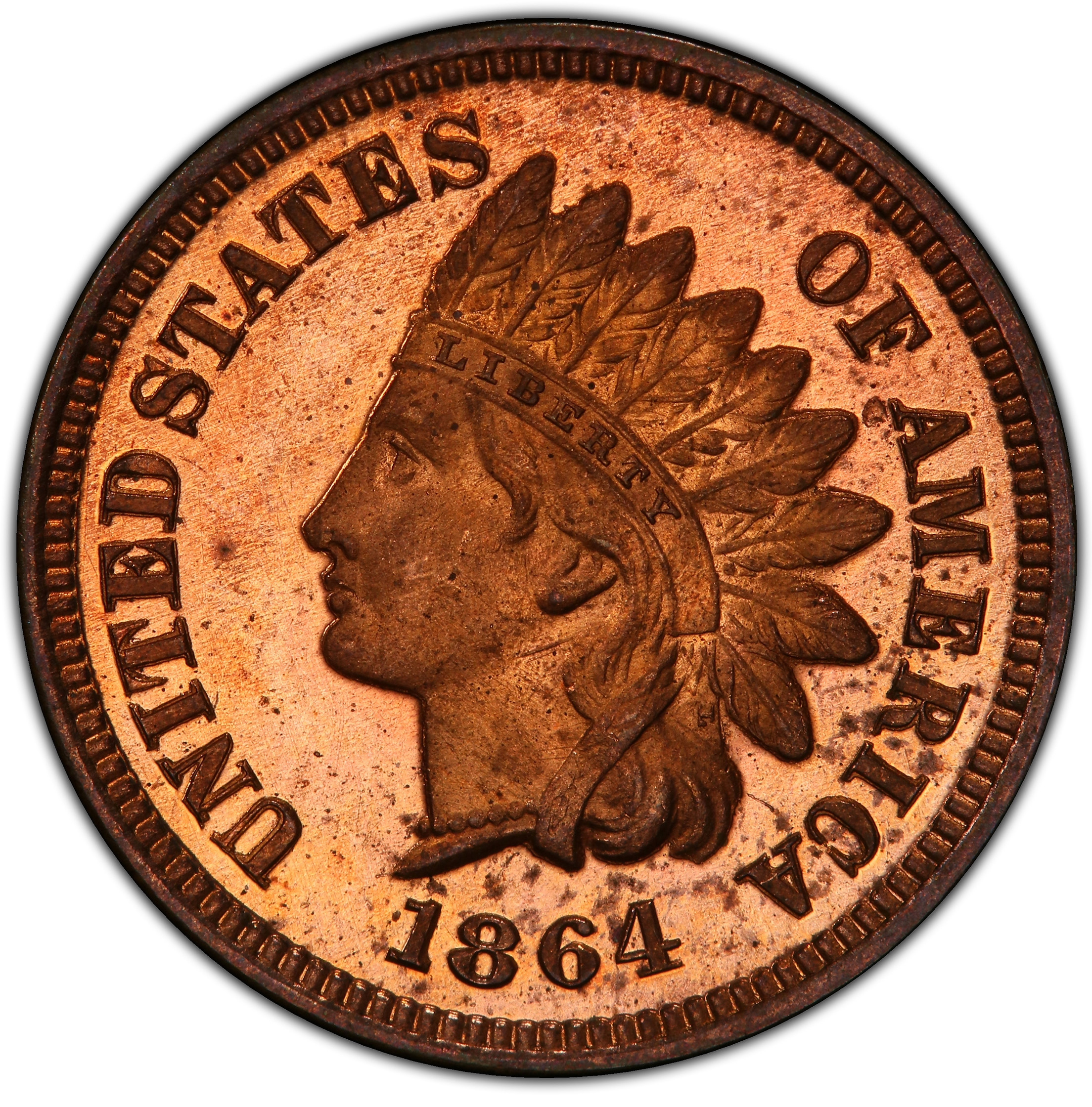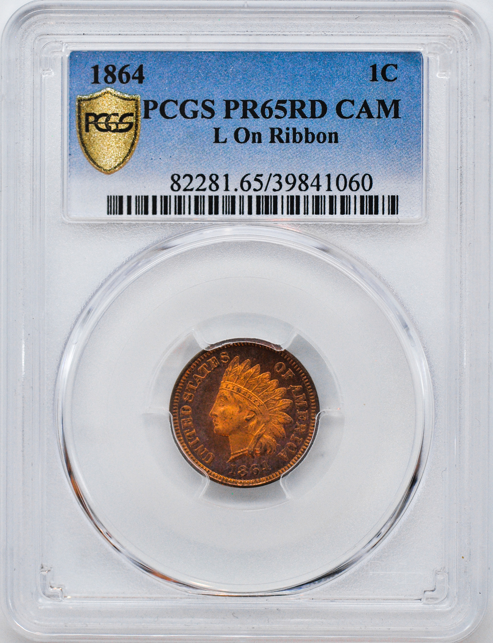 1864 INDIAN BRONZE 1C, L ON RIBBON PR65 Red1864 INDIAN BRONZE 1C, L ON RIBBON PR65 Red