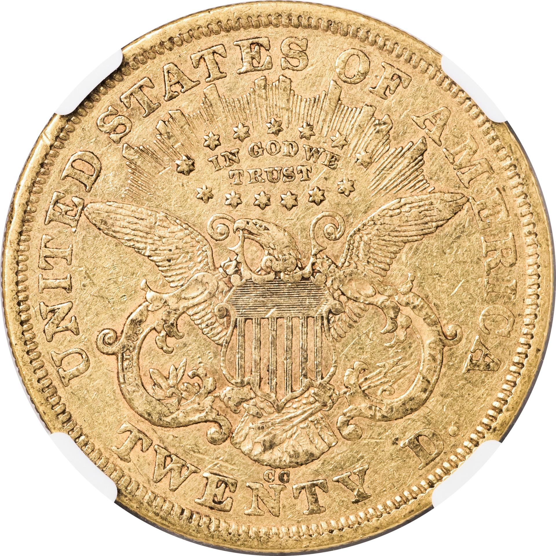 VERY CHOICE SURFACES FOR AN ABOUT UNCIRCULATED SPECIMEN. THE RAREST CARSON CITY $20 LIBERTY WITH LESS THAN 50 COINS KNOWN TO EXIST IN ALL GRADES. JUST TWO COINS GRADED HIGHER.