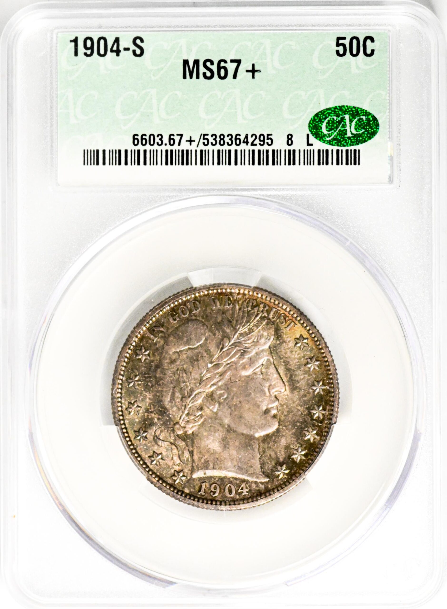 1904-S BARBER 50C MS67+